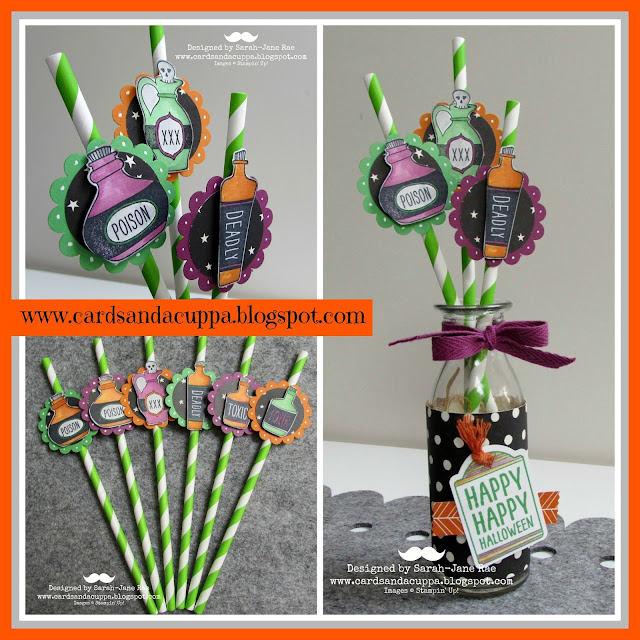 So I started with the Sweet Hauntings stamp set and decided to add a little topper to some of these paper straws I found last week when I was out and about and came up with these...