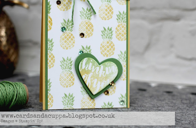 I really love pineapples and I wanted to stamp the new Pop Of Paradise mini pineapple in two colours. Of course I could use my markers but it does get a bit tedious when you want a lot of them like on this card...