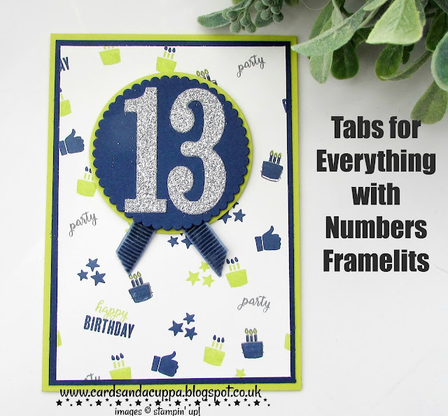 Today I have acute ahem, cool card for a new teenager. I've used the Tabs for Everything for the background and as all teens/kids want to see they've hit the next big number so '13' has pride of place...